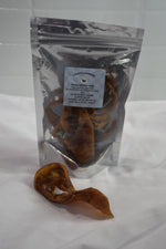 These are small pieces of ear, a long lasting chew for a smaller dog. No gums, oils or preservatives added, 100% single protein treats. Promotes healthy gums from chewing, helps reduce plaque and tartar build up for better oral hygiene.
